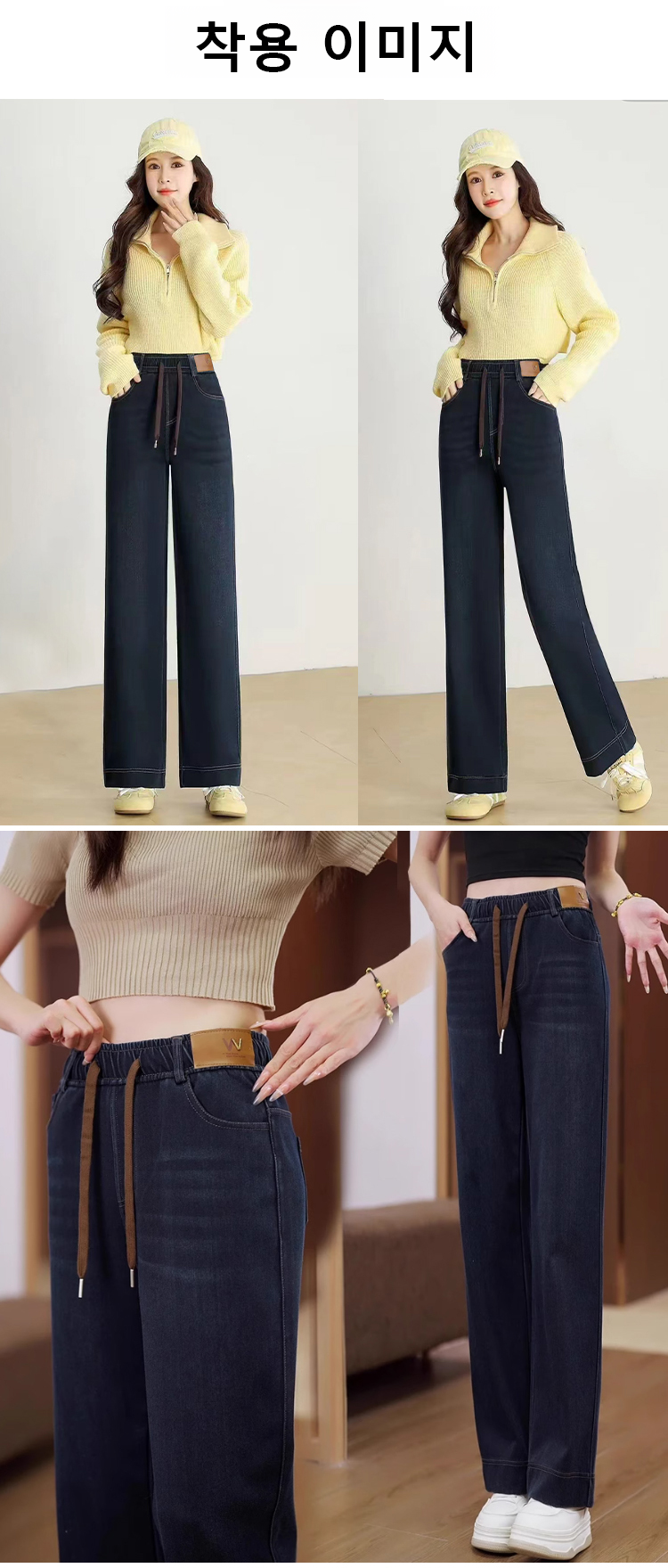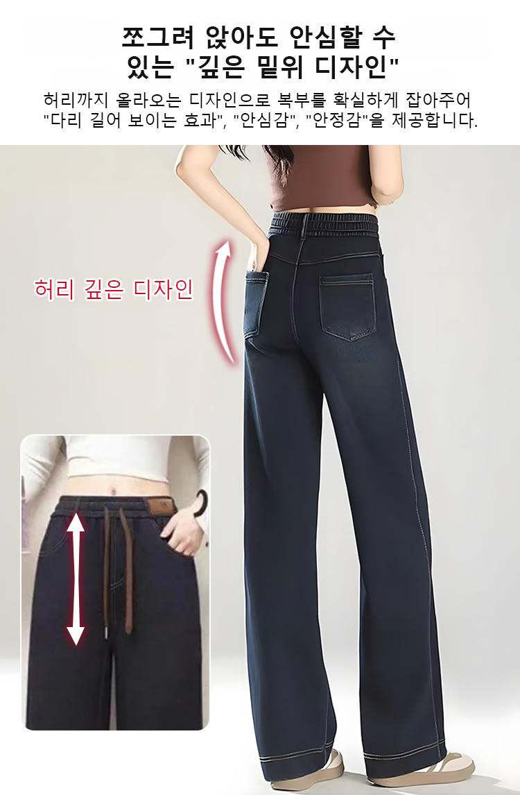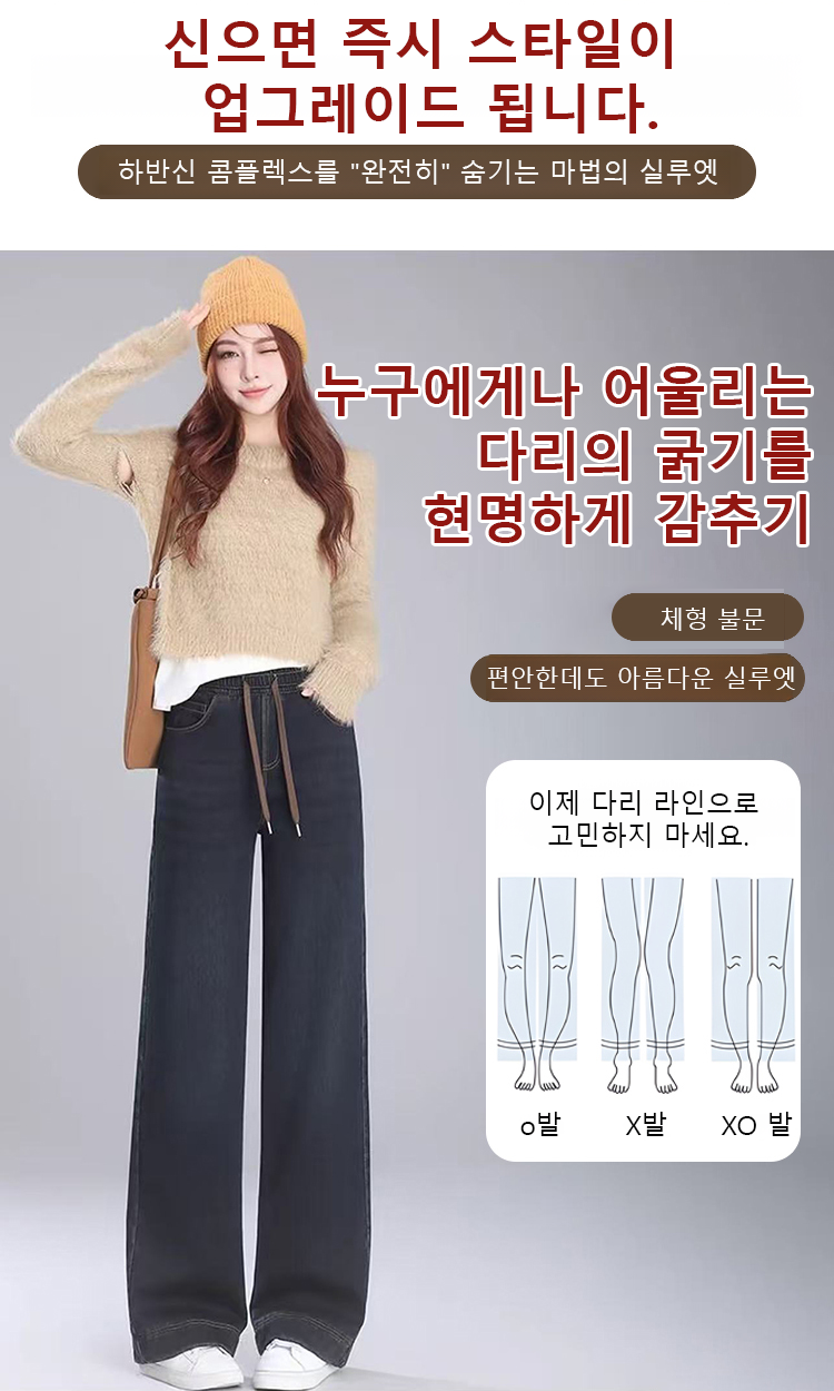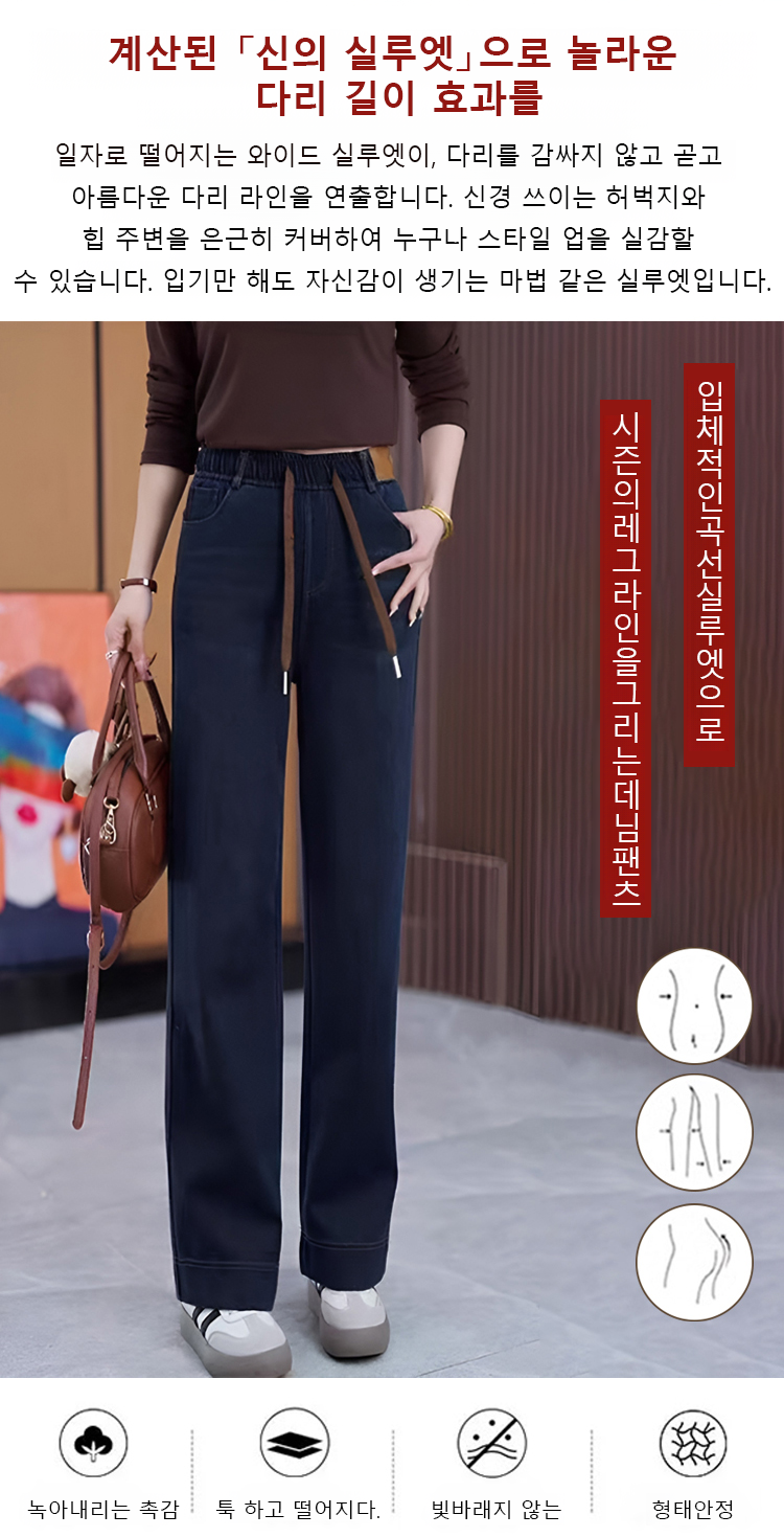 【힙업 다리 커버형】하이웨이스트 루즈핏 여성용 데님 와이드 팬츠