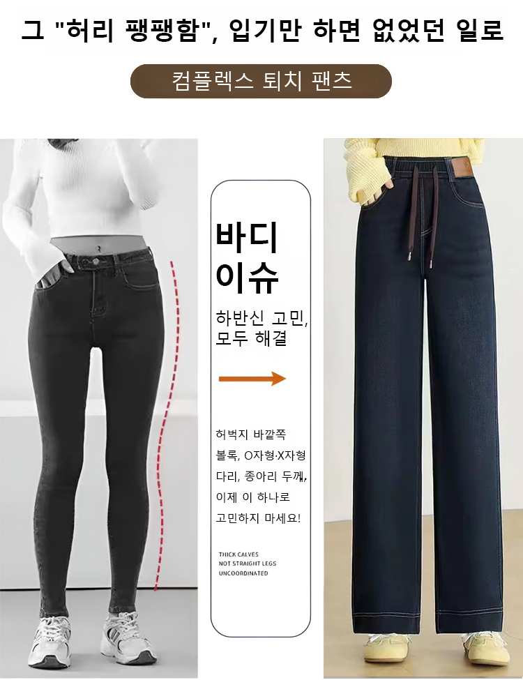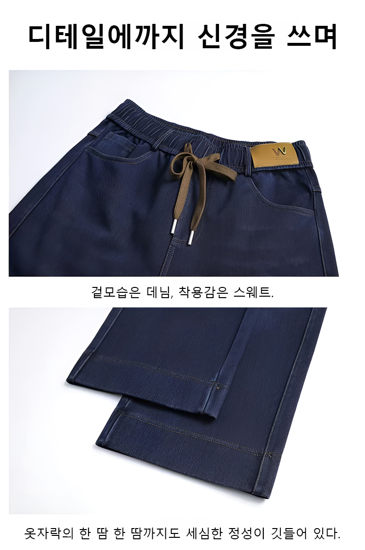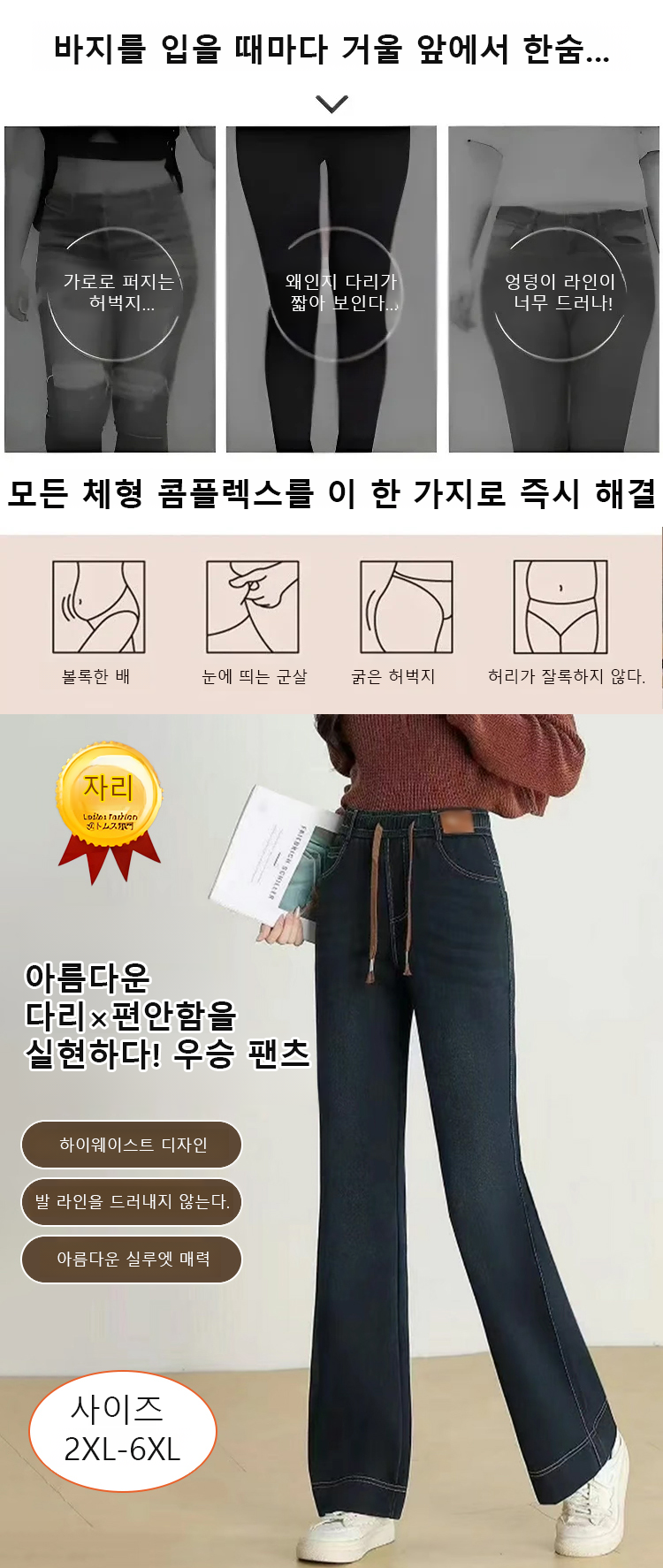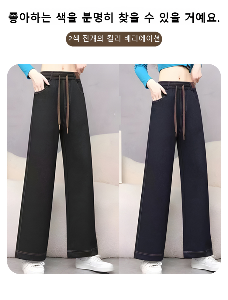 【힙업 다리 커버형】하이웨이스트 루즈핏 여성용 데님 와이드 팬츠